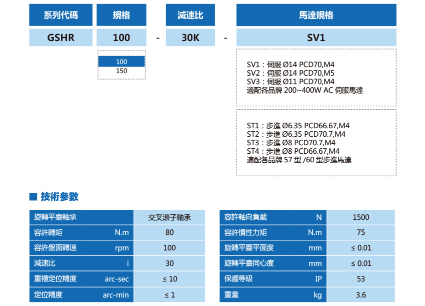 중공 회전 플랫폼/GSHR 시리즈는 웨이브 기어와 크로스 롤러 베어링을 사용하여 측면 장착 및 측면 설치 용도에 적합합니다. 스파이럴 가이드 웨이브 기어는 스파이럴 베벨 기어에 비해 높은 감속비, 높은 토크, 높은 정밀도 및 낮은 마모 등의 장점을 제공합니다. 전달 방식은 슬라이딩 방식이며, 전달 정밀도는 최대 30 arc초, 전달 효율은 96% 이상입니다.