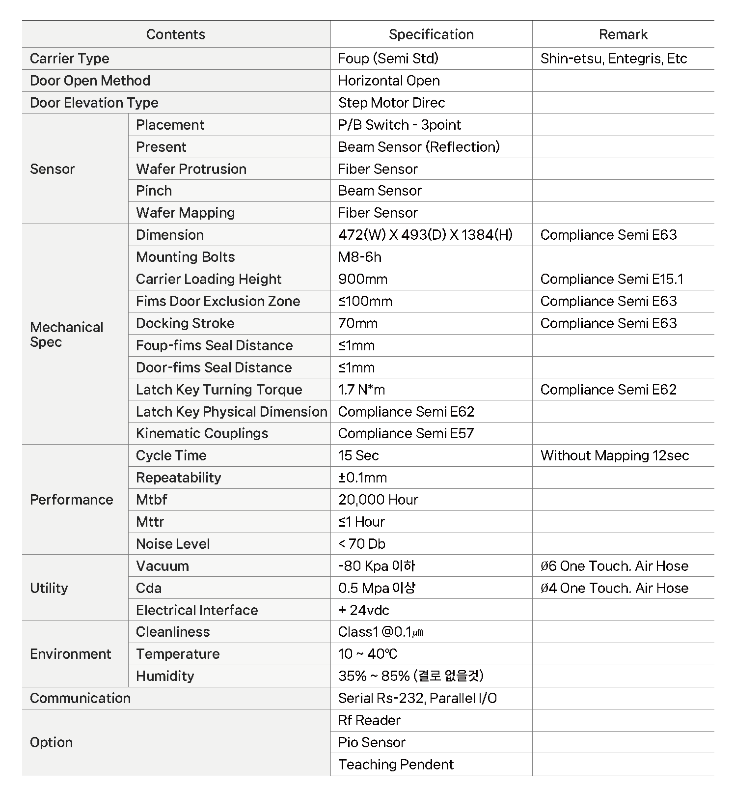 - Wafer 12”이상(FOUP)의 Door 개폐 기능